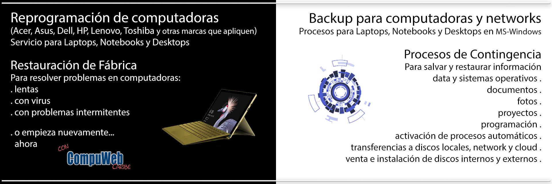 CWCProvee Servicios Profesional Personalizados de Computadoras, Páginas en Internet y Servicios Relacionados.Descargue el último boletín de Servicio AQUI.Contacte a JC para más información.